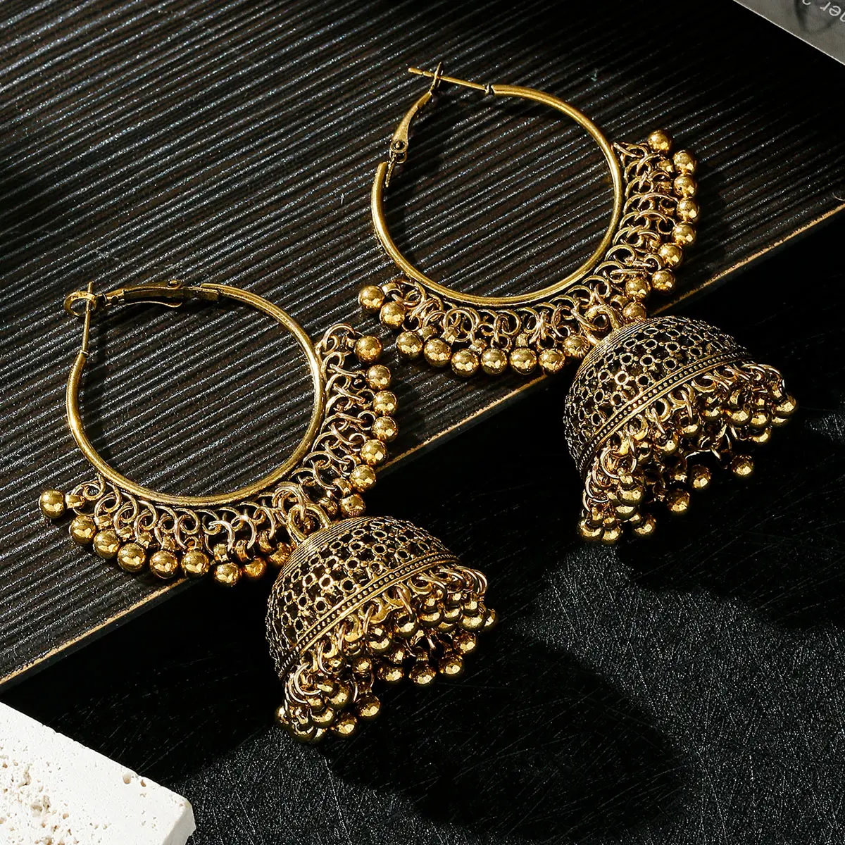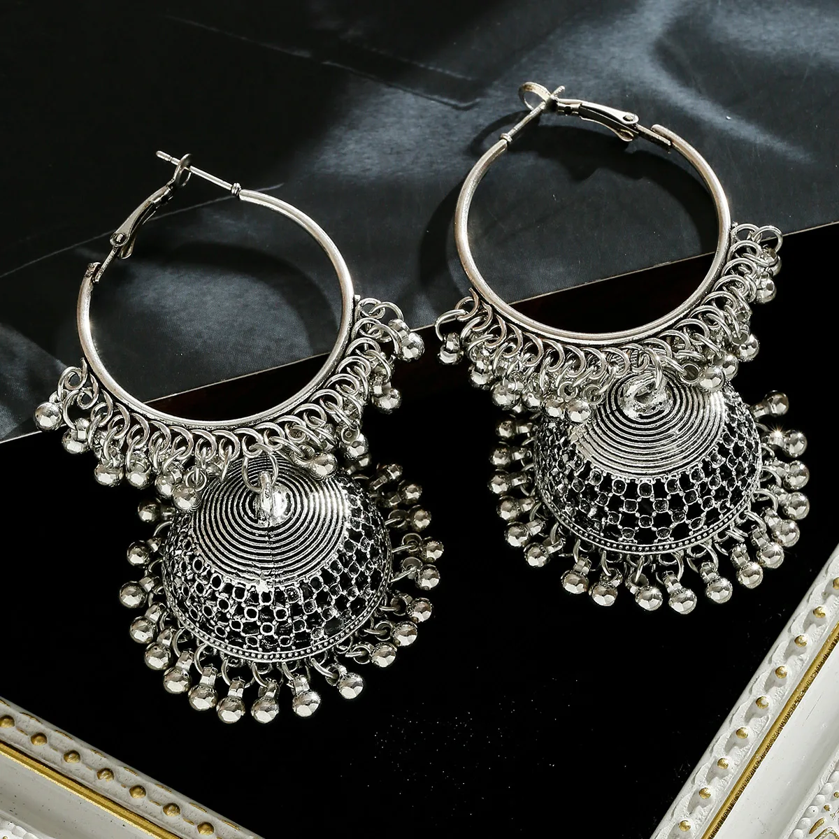 Women's Ethnic Big Round Bells Tassel Indian Jewelry Gypsy Earrings Pendientes Vintage Tribe Jhumka Earrings Jewelry